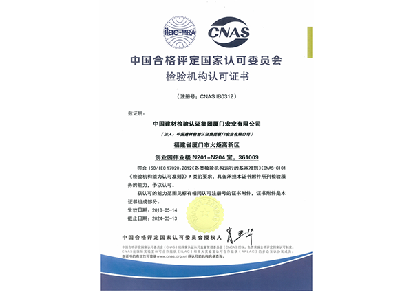 CNAS檢驗(yàn)機(jī)構(gòu)認(rèn)可證書(shū)