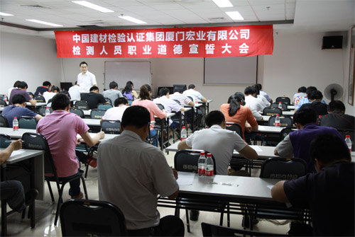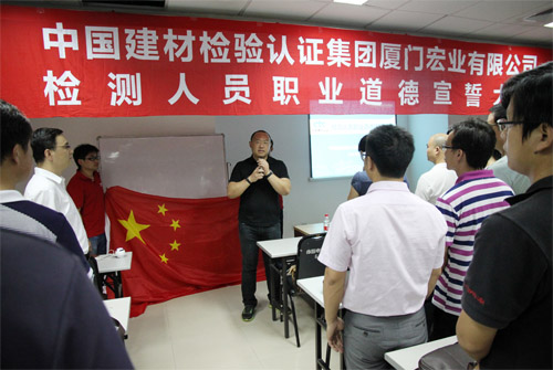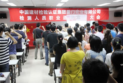 中國(guó)建材檢驗(yàn)認(rèn)證集團(tuán)廈門(mén)宏業(yè)有限公司 順利召開(kāi)檢測(cè)人員職業(yè)道德宣誓大會(huì)